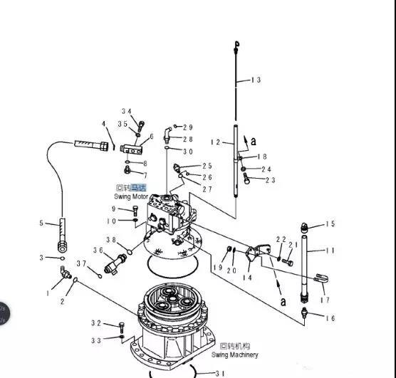 二、旋转慢或者动首先检查齿轮油和液压油是否足够,其次可从以下方面排查:1、回转马达出现故障。2、回转先导压力低。3、回转操作阀内是否堵塞。4、旋转时快时慢,可能是 先导油路的问题或者是分配器故障。
