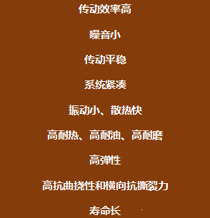 抗拉体:骨架结构,为特殊热处理后的芯绳,使带子具有高模数及抗冲击荷载的能力;橡胶粘合:保持芯绳与橡胶楔的结聚力,同时保护芯绳;橡胶楔:不同型号的楔部橡胶一般加入不同的纤维,纤维加固的橡胶楔可以支持芯绳,同时使带子具有良好的耐磨损性能。