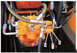 2) 当发动机高怠速运转且回转油路溢流时测量液压油压力。