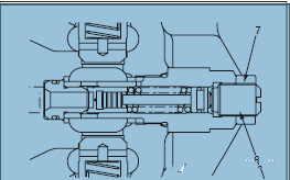 注:工作装置和行走油路内的高压溢流压力不正常,按下列顺序调整主溢流阀(3)的高压设定侧。