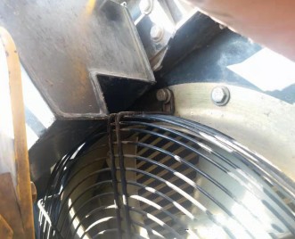 4、如下图所示:拆下风扇护罩固定螺栓,将风扇护罩从卡扣中取出(左右各一个卡扣),旋转风扇护罩至开口朝向检修门侧。