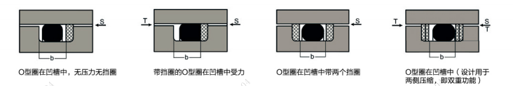 如果压力超过50bar(5MPa),则应在O型圈上的基础上加一个挡圈,并将间隙缩小到接近0毫米。