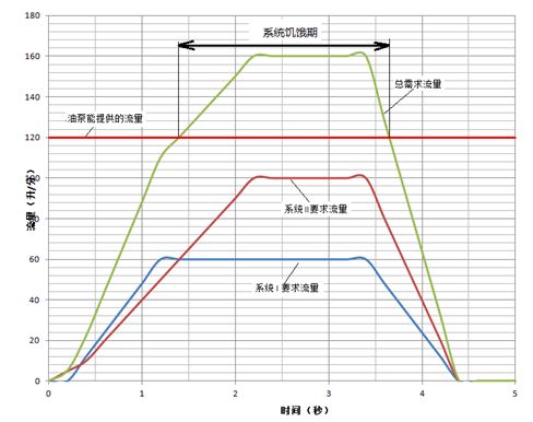 1:系统可以提供饱合流量,用前置式压力补偿,不论回路的负载压力如何变化或其他回路的负载压力变化,回路的控制流量不变,如下图;
