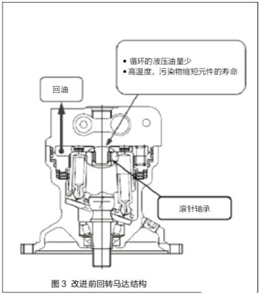 按照以上方法改进滚针轴承润滑润滑方式后,市场验证结果表明,回转马达耐用性能得到了大幅度提高,相关挖掘机再未出现滚针轴承损坏故障。