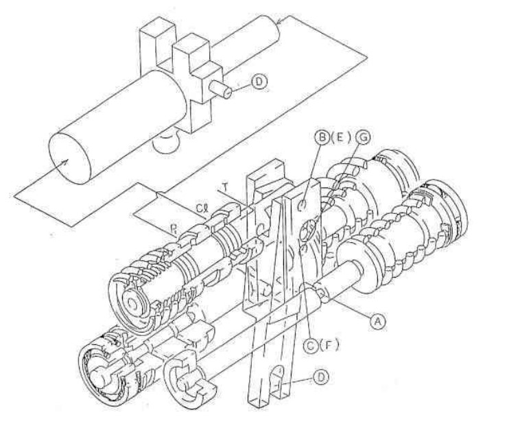 主要是通过六角螺母630来调节螺钉C(628)来拧紧螺钉,控制图向右边移动。四分之一圈,调节的压力是增加或缩小16kgf/cm㎡,输入的扭矩也相对应的5kgf.m。K3V112作为工程机械用的活塞泵,应用范围广,主要更被人称道的是它的质量。