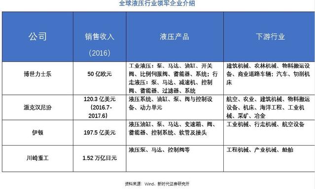 德、美、日制造业底蕴深厚,拥有全球液压巨头企业,德国、美国、日本的液压产业在全球保持领先,拥有液压行业最优质企业。总体而言,液压产业的发展离不开庞大的本土市场需求和企业强大的技术研发实力与工艺积淀,德、美、日作为传统的制造业强国,强大的制造业底蕴成就了一批液压行业的百年老店,全球液压元件行业公认的百年老店包括:博世力士乐(Rexroth)、派克汉尼汾(Parker Hannifin)、伊顿(Eaton)、川崎重工等。