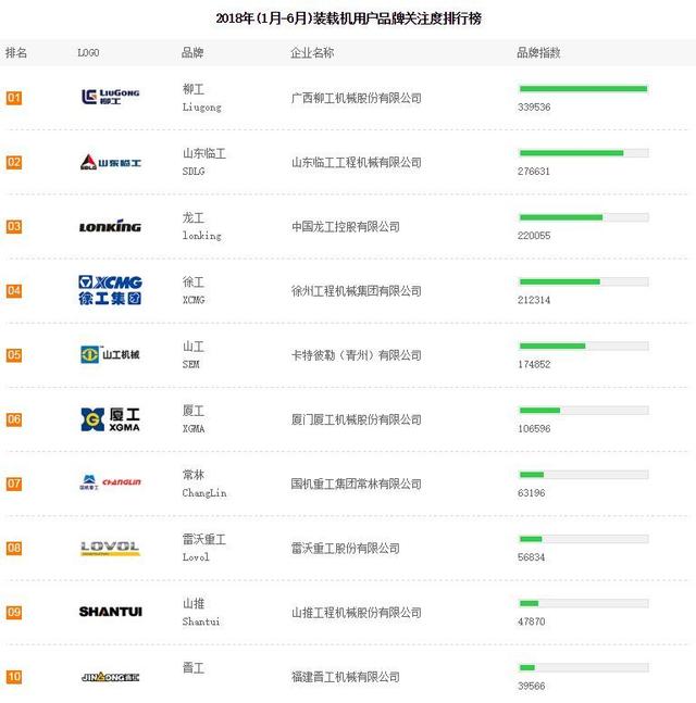 通过上半年装载机用户对品牌的关注排名榜看,以柳工、临工、龙工三大工第一梯队的铁三角阵营没有发生改变,依然占据装载机品牌关注榜前三,通过用户关注度也在一定程度上反映出品牌的销售情况。(如下品牌关注度仅供参考)