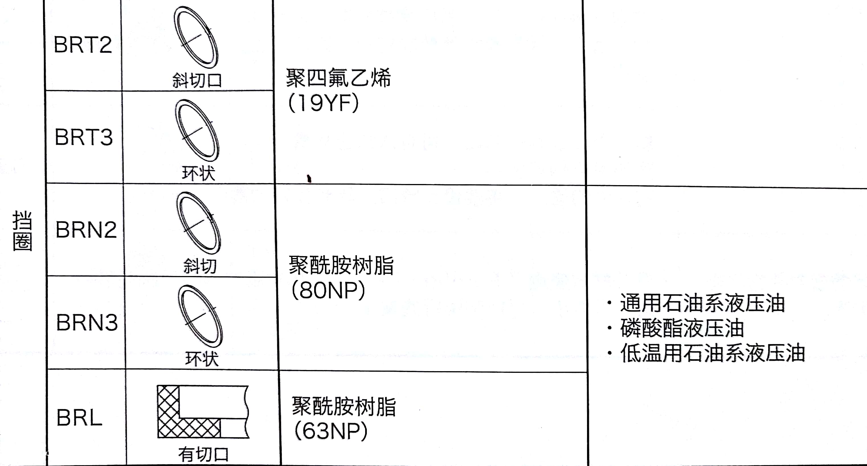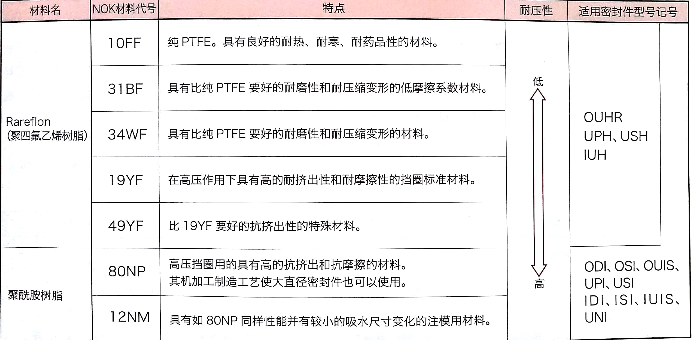 根据上表可以看出ODI、OSI、OUIS、UPI、USI、IDI、ISI、IUIS、UNI有配套的聚四氟乙烯树脂和聚酰胺树脂挡圈可供选择。