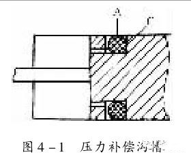 1) 压力补偿沟槽。被密封的液体压力过高或液压冲击都会引起O 形圈的泄漏。动密封时, 如果压力超过 4MPa, 则可能漏油, 加了挡圈以后, 压力可有所提高。但液压冲击会使局部瞬时压力比正常工作压力高出好几倍, 可能使O形圈失去密封性能, 在这种情况下, 可采用带有压力补偿功能的沟槽。采用这种沟槽, 在16MPa压力下也可不漏。这种O形密封圈沟槽尺寸为:槽宽b比O 形圈线径d1大0.2~1mm, 槽底径D比O形圈内径小0.2~2mm, 端部靠近槽底钻2~4个直径为2~4mm的小孔, 单作用液压缸打一头, 双作用液压缸可打两头 (图4-1) 。活塞外径与缸径配合间隙可放大,o形圈截面直径越大, 间隙就越大, 一般为 0.1~0.5mm。通常的密封圈接触点在外径处 (a点) 。在这种密封接触点在a点和一侧面 (c 点) , 随着压力增高, 接触更为紧密, 起压力补偿作用,同时活塞加工尺寸公差没有什么更大要求, 表面粗糙度为R6.3~3.2um便可。
