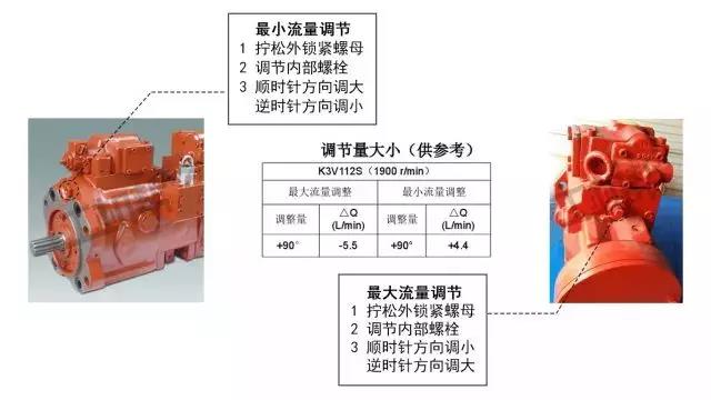 在出现故障后,大可不必惊慌,首先确认液压油是否及时更换,排除液压油问题后,可以先尝试微调液压泵上的调节器。液压泵的流量调节,实际是通过调节器内的伺服活塞改变泵的斜盘倾角,从而改变柱塞行程,来改变流量的。