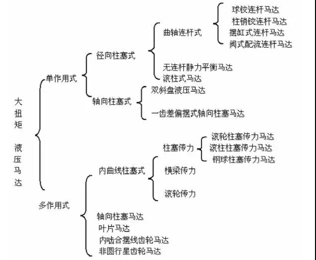 大扭矩液压马达根据每转中工作副中的作用次数,可大致分为单作用式和多作用式。具体分类可参照图1所示