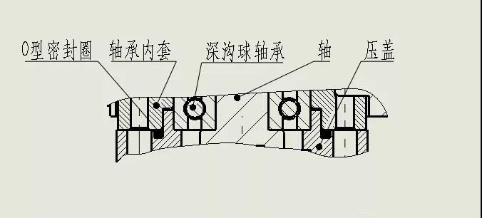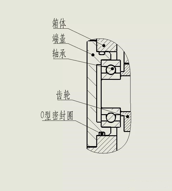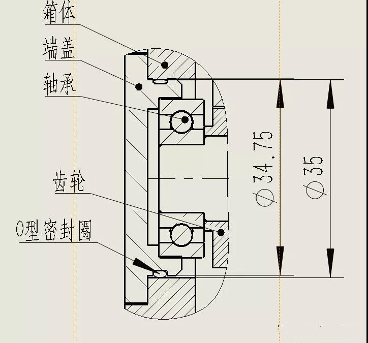 该图中孔径为Ø35,密封处为端盖的轴径与孔的静密封,也不承受高压,则可取线径较小的密封圈,则可查表确定其规格为Ø35x1.9,这样可以以此计算轴与孔的尺寸了