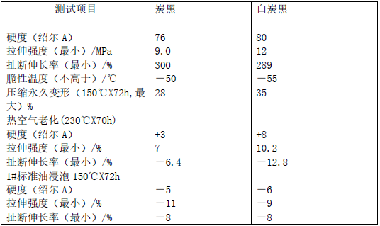 以氟硅橡胶为例:采用相同的生胶和硫化系统,但采用不同的炭黑,就有不同的性能。