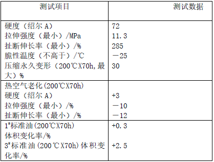 配方二: 丁腈220S 100;氧化锌 5;硬脂酸 1;防老剂RD 2;防老剂 1;半补强SRF N774 70;石墨 20;增塑剂TP-95 15;TMTD 2;MD 1;硫磺 1。