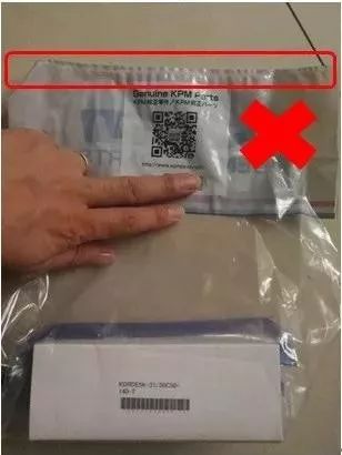 如下图所示,纯正品包装袋最上方有一段透明封口区域,而那些企图再利用川崎纯正品包装袋的不法商家,会将透明塑封口剪去后,重新塑封到白色区域,若没有认真观察是无法看出。