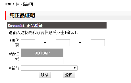 输入防伪码,验证码,选择产品购买的省份,然后点击“确认”