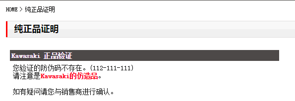 望广大用户提高警惕,在购买川崎纯正品时,积极刮开涂层防伪码,在川崎官方网站上进行纯正件验证,还需仔细留意包装袋是否有再利用痕迹。