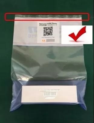 如下图所示,纯正品包装袋最上方有一段透明封口区域,而那些企图再利用川崎纯正品包装袋的不法商家,会将透明塑封口剪去后,重新塑封到白色区域,若没有认真观察是无法看出。